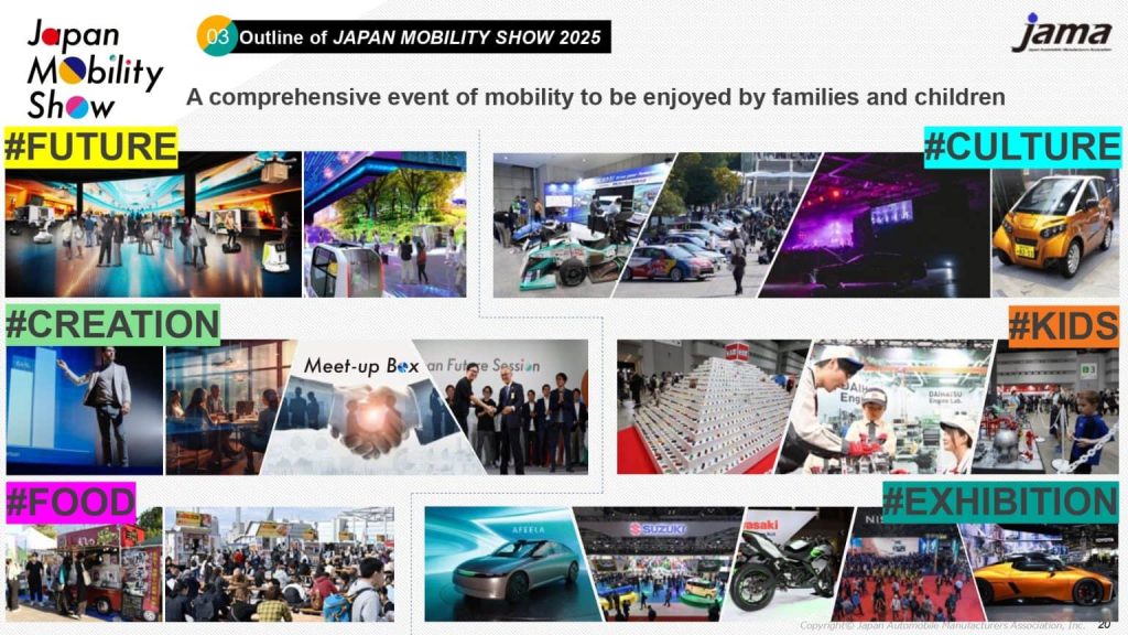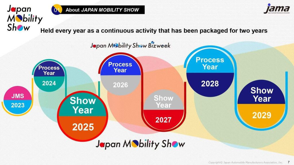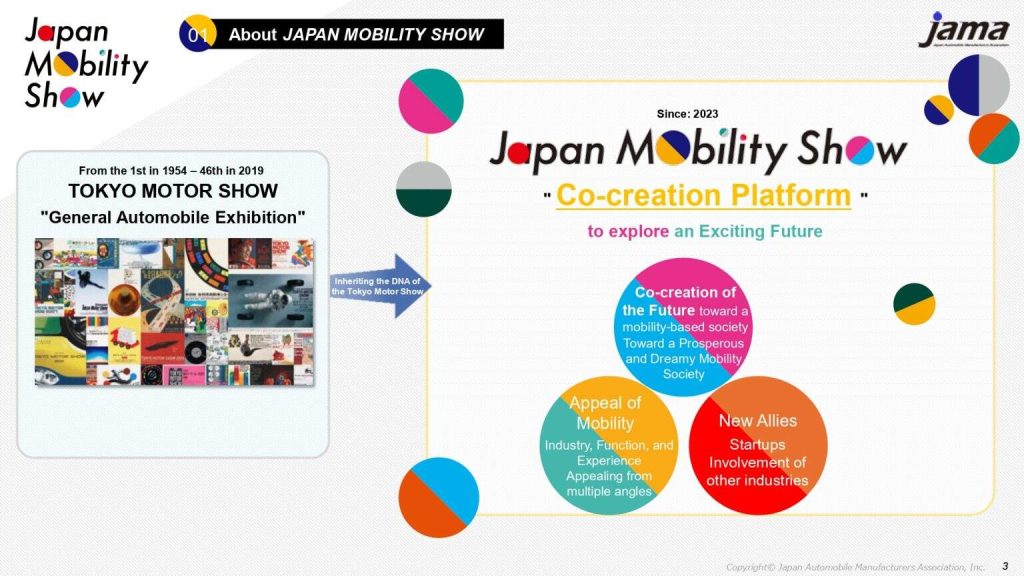 เจแปนโมบิลลิตี้โชว์ Japan Mobility Show 2025 ซึ่งเปลี่ยนจากชื่อเดิม ” โตเกียวมอเตอร์โชว์ ” เป็นชื่อใหม่ และจัดแสดงครั้งแรกในปี 2023 (งานเจแปนโมบิลลิตี้โชว์ จัด 2 ปีครั้ง)