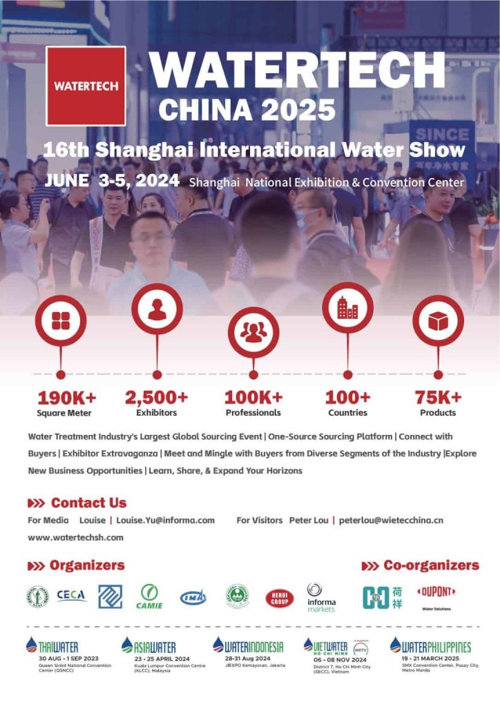 WATERTECH CHINA Shanghai 2025 เป็นงานที่รวบรวมผู้แสดงสินค้ากว่า 2,500 ราย จากทั่วโลก และดึงดูดผู้เชี่ยวชาญในอุตสาหกรรมน้ำกว่า 100,000 คนจากกว่า 100 ประเทศและภูมิภาค งานนี้ครอบคลุมพื้นที่จัดแสดงกว่า 190,000 ตารางเมตร และนำเสนอเทคโนโลยี ผลิตภัณฑ์ และโซลูชั่นที่ครอบคลุมทุกด้านของอุตสาหกรรมน้ำ
